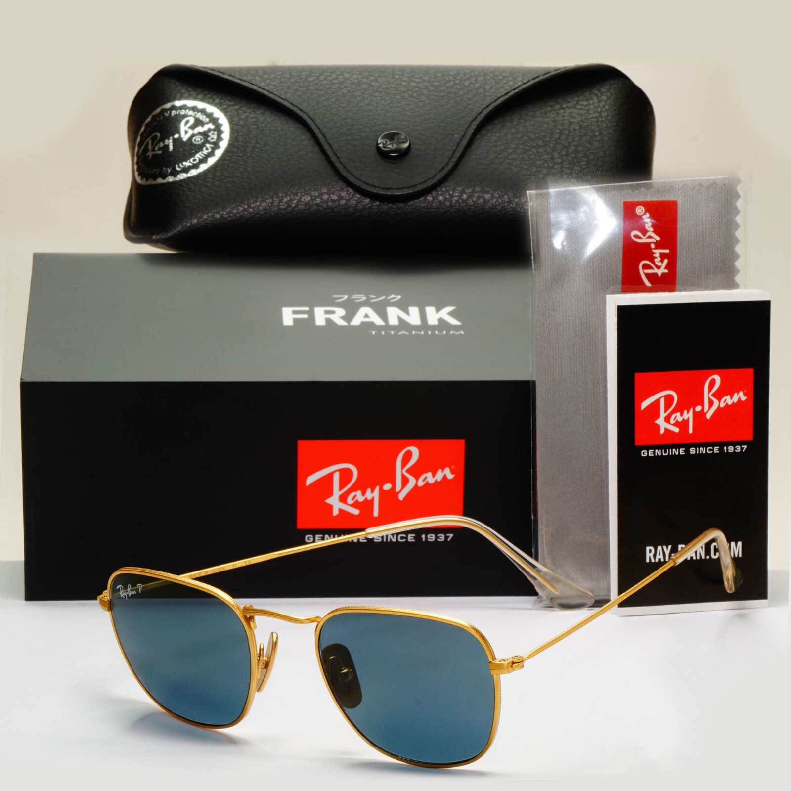 Ray-Ban Sunglasses Frank Titanium Polarised Gold Blue RB 8157 Frank 9217/T0 48mm