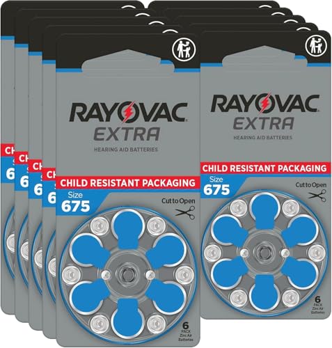 Rayovac Extra Advanced Hearing Aid Batteries, Size 675, Blue Tab, PR44, Pack of 60