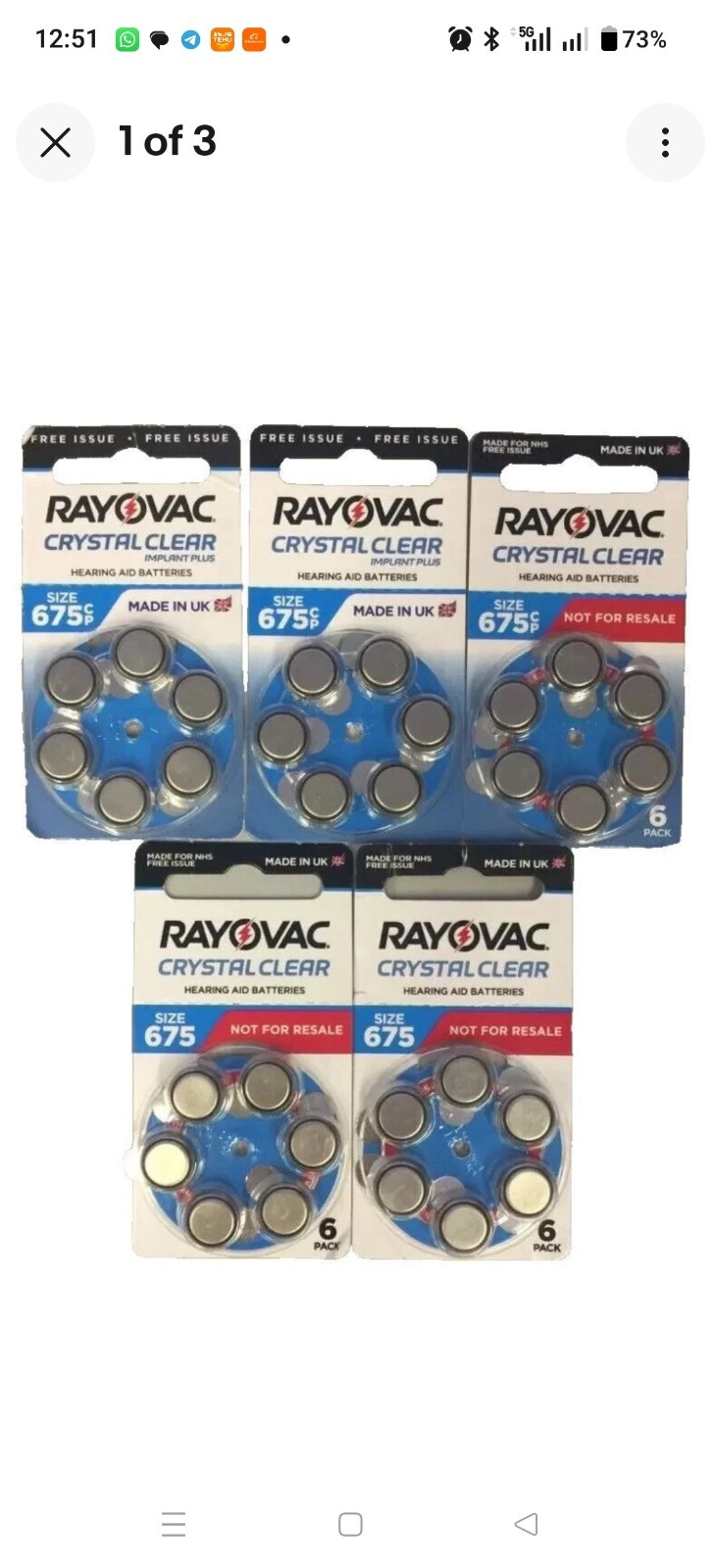 66x Rayovac Crystal Clear Size 675 PR44 Hearing Aid Battery 1.45v (11 X 6 Pack)
