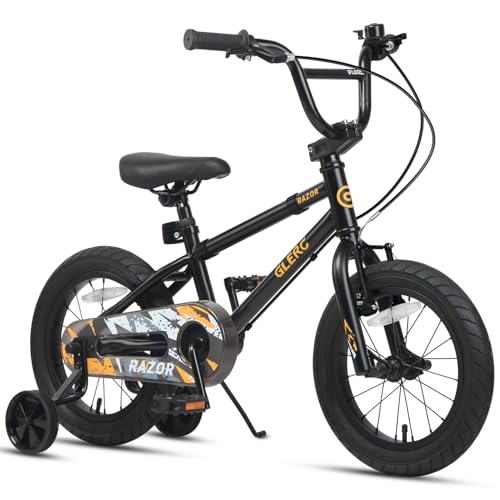 Glerc Razor 16 Inch Kids Bike for 4 5 6 7 Years Old Boys BMX Style Bicycle with Kickstand & Safety Bell & Removable Stabilisers, Black