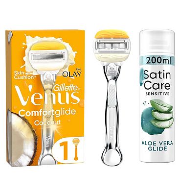 Venus Pro ComfortGlide Coconut Olay Razor + Satin Care Aloe Vera Shave Gel Bundle