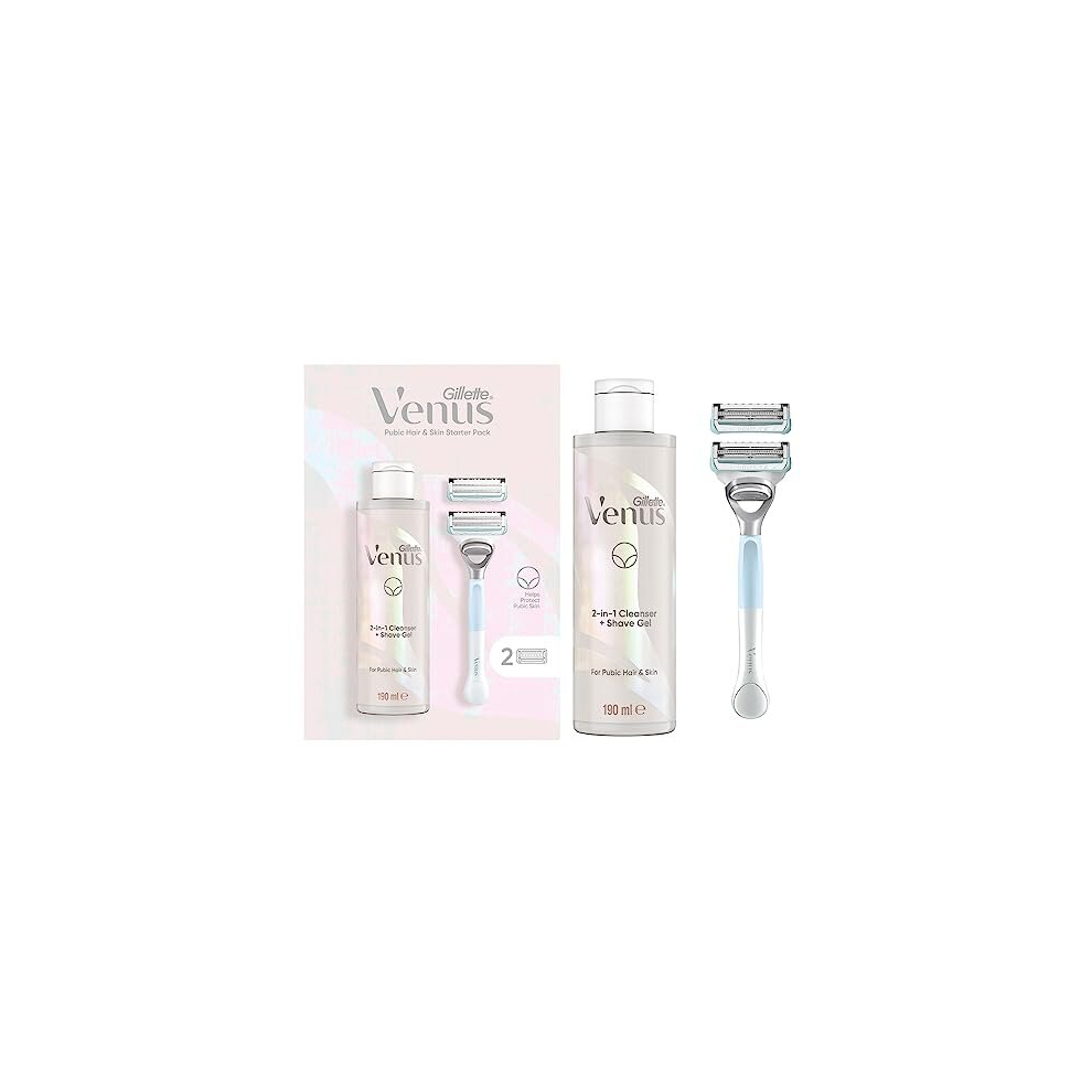 Women's Razor + 2 Blade Refills + 2in1 Shave Gel and Cleanser 190ml Bundle, Specifically Designed for Pubic Hair & Skin with A PH Balance