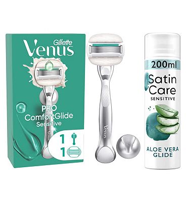 Venus Pro ComfortGlide Sensitive Razor + Satin Care Aloe Vera Shave Gel Bundle