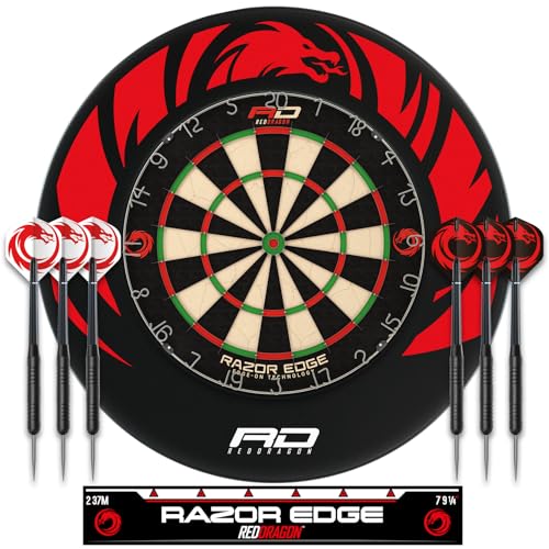 Red Dragon Razor Edge Tournament Bristle Dartboard Set | Including Dragon‑Design Surround Ring | 2× Steel‑Tip Darts | Complete Professional Dart Board and Surround Bundle
