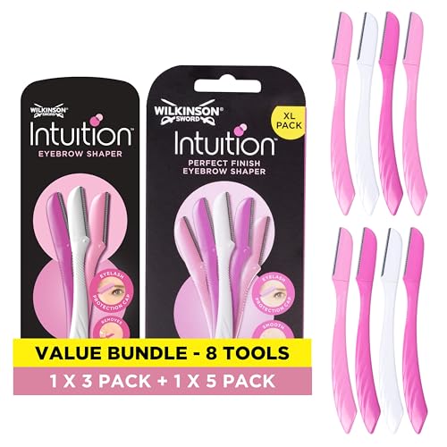 Wilkinson Sword Intuition Eyebrow Shaper for Women Facial Hair Remover and Trimmer Exfoliating Dermaplaning Tool Pack of 5 & 3 Disposable Razors