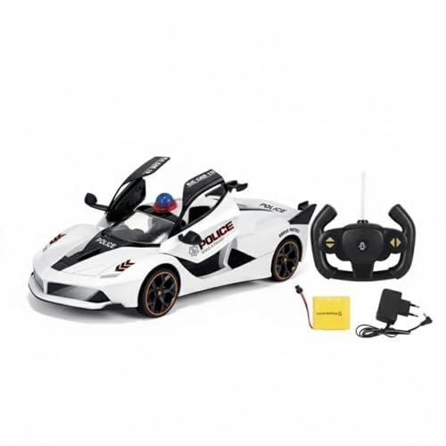 YSAMAX Top Speed RC Police Sports Car NO.565, K5, Remote Control Rechargeable Supercar with Opening Doors, Flashing Lights & Realistic Design, High-Speed Racing Vehicle Toy for Kids White