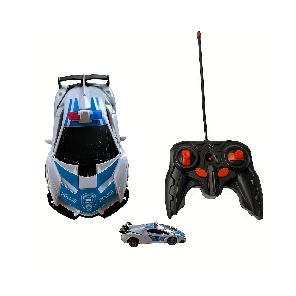 Robot Transforming Rc Police Car Toy With Realistic Lights And Sirens, Remote Controlled Drift Car Featuring 2.4 GHz Signal And Usb Charging Support