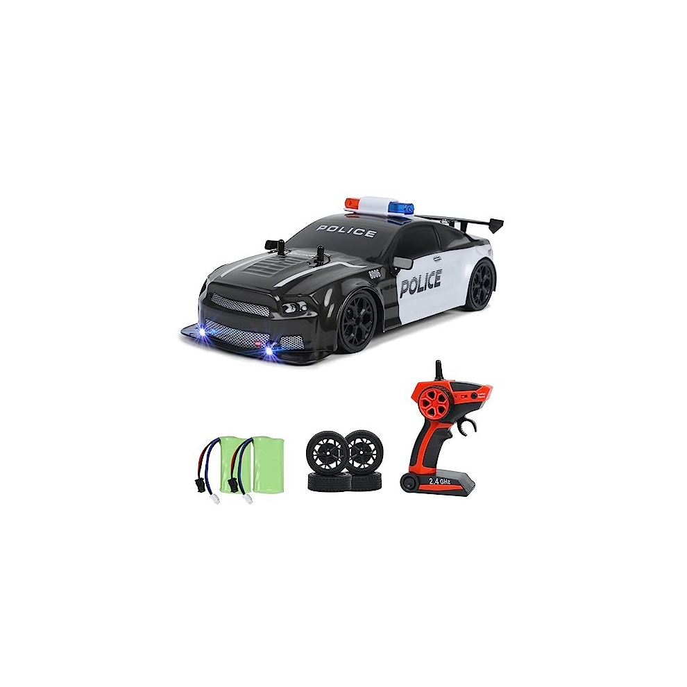 Dodoore 1:24 Scale RC Drift Car Police Vehicle, 2.4GHz 4WD High Speed Racing with Cool Lights Extra Tires, Fast RC Car Gifts for Teen Adults 2 Rechargeable Battery