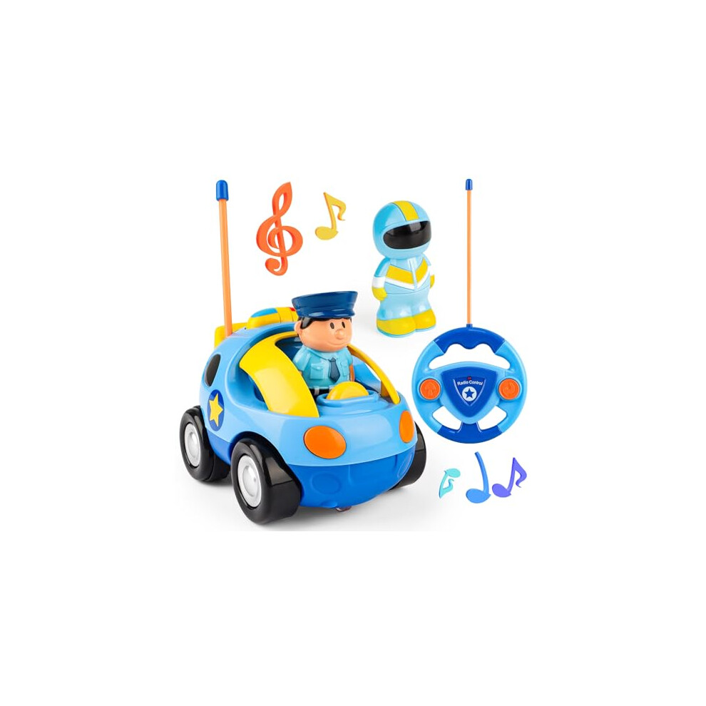 deAO 2 Dolls Remote Control Cartoon Car for Toddlers with Light & Music, RC Police Car Toys, Birthday Xmas Gift Present for Boys & Girls Aged 18