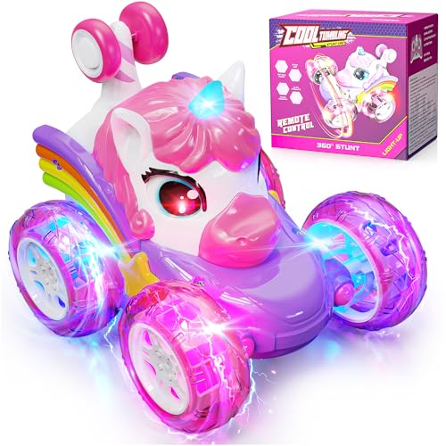 Dreamlandia Toys for 3-12 Year Old Girls Gifts, Remote Control Cars Girls Kids Toys age 3-8 Birthday Presents, Outdoor Garden Games, 2.4GHz Unicorn RC Stunt Car with LED Light & 360° Flips
