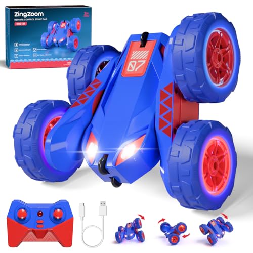 zingzoom Direct Charging Remote Control Cars, 2.4Ghz Amphibious 360° Flip Rc Stunt Car, All Terrain 4WD Child's Toy Vehicle with LED Light, Car Games Age 3-12 Boys Girls Kids Birthday Gifts Presents