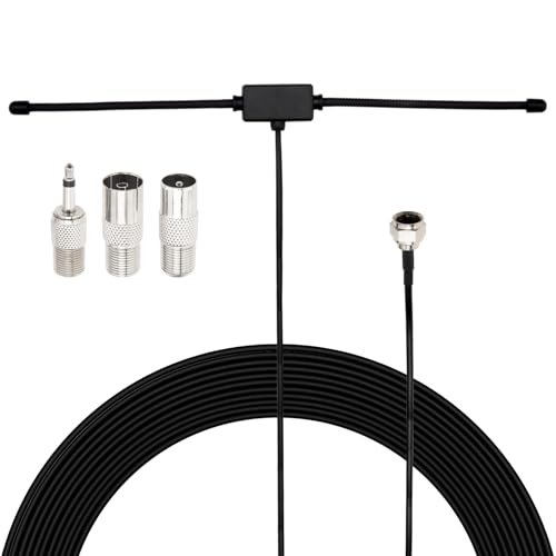 BOOBRIE FM Antenna 75 Ohm with 3M Extension Cable and 3PCS F Type to TV/RCA Universal Adapter for Bose Wave, Yamaha, JVC, Pioneer, Panasonic, Audio/Visual Systems and Bluetooth Receivers