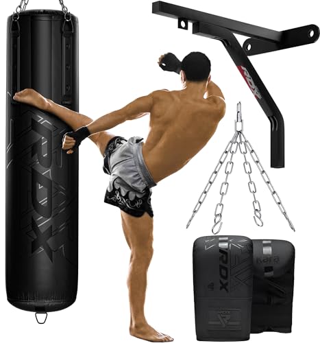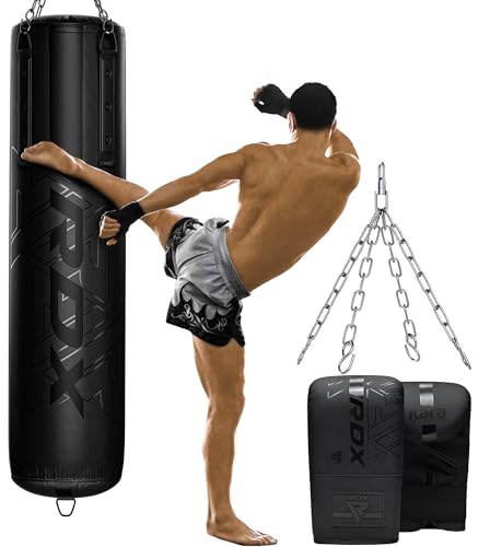 RDX Heavy 5FT Punch Bag Pro Training 2PC 3PC & 4PC, 25KG Pre Filled with 50KG Max Filling Capacity, Boxing Bag Set with Gloves, Bracket, Hanging Steel Chain, MMA Kickboxing Muay Thai BJJ Home Gym