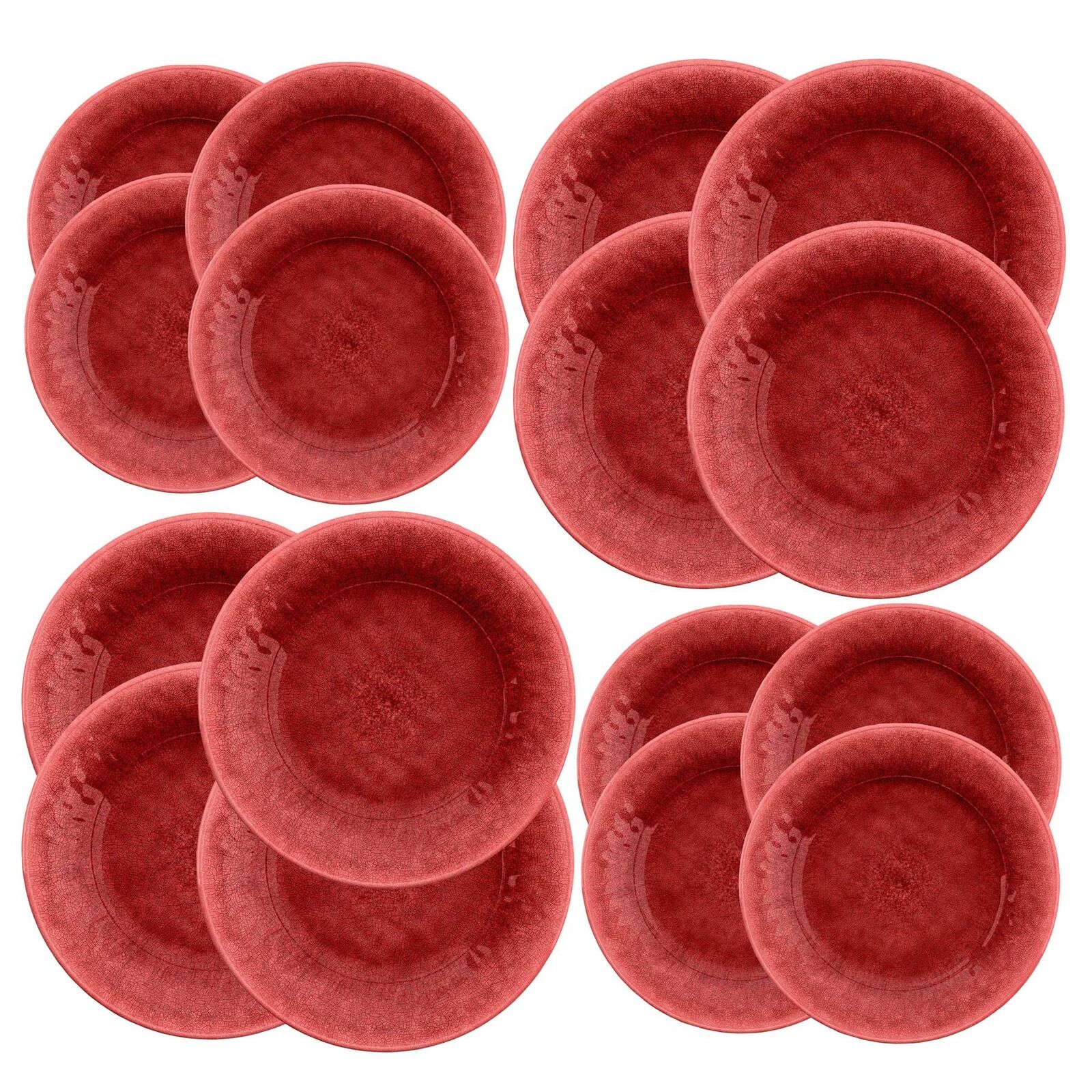 Potters Reactive Glaze Red Melamine Outdoor 16 Piece Dinner & Side Plate Set
