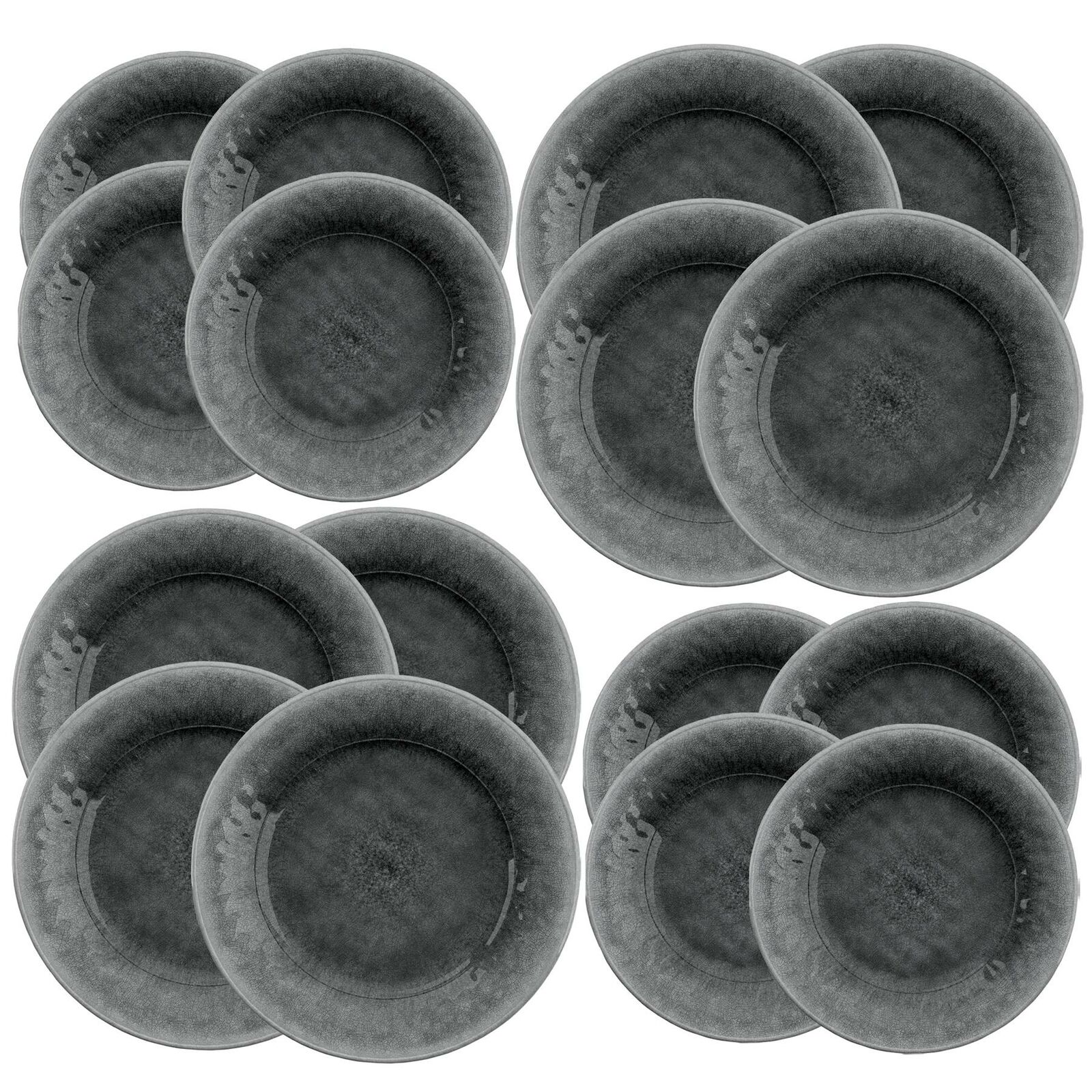 Potters Reactive Glaze Grey Melamine Outdoor 16 Piece Dinner & Side Plate Set