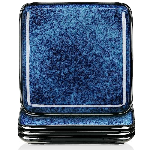vancasso Dinner Plates Set, 10.5 Inch Scratch-Resistant Ceramic Plates, Microwave, Oven and Dishwasher Safe Plates Set of 4, Reactive Glaze and Vintage Blue Look