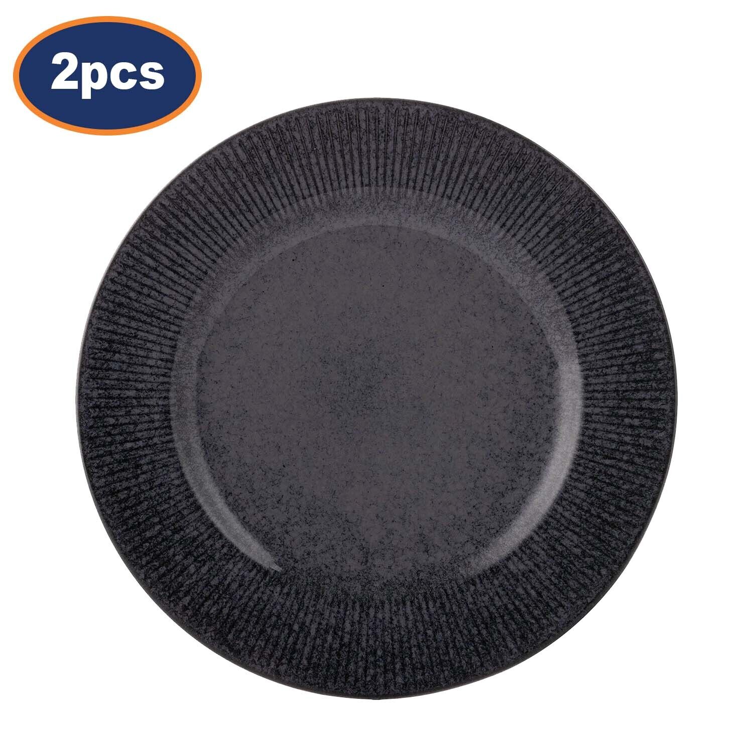 Stoneware Dinner Plate 27cm Round Black Linear Reactive Glaze Crockery 2pc Set