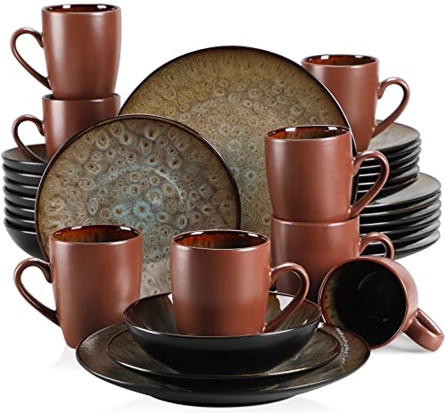 vancasso Bubble Brown Dinner Set, Reactive Glaze Dinnerware Tableware, 32-Piece Dinner Service with 11in Dinner Plate, 8in Dessert Plate, 7in Bowl and 380ml Mug, Service for 8