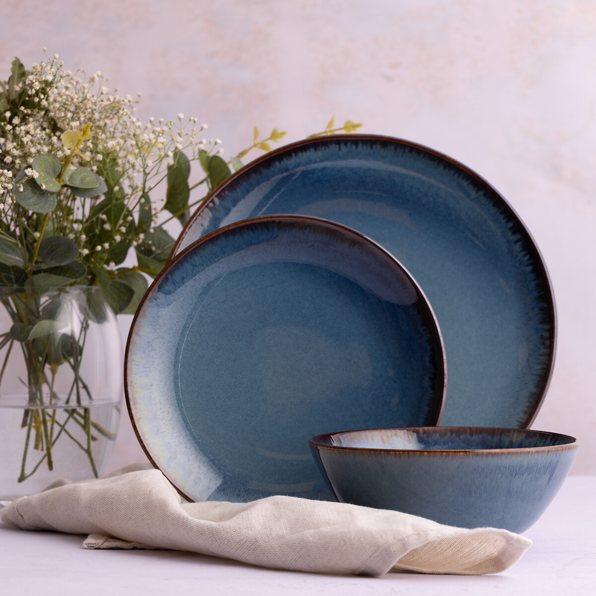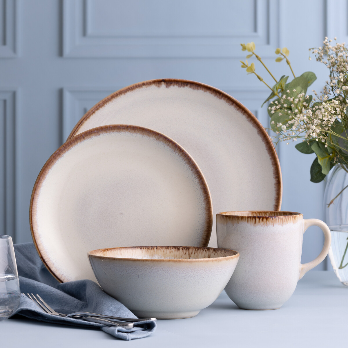 Habitat 12 Piece Reactive Stoneware Dinner Set - Blue