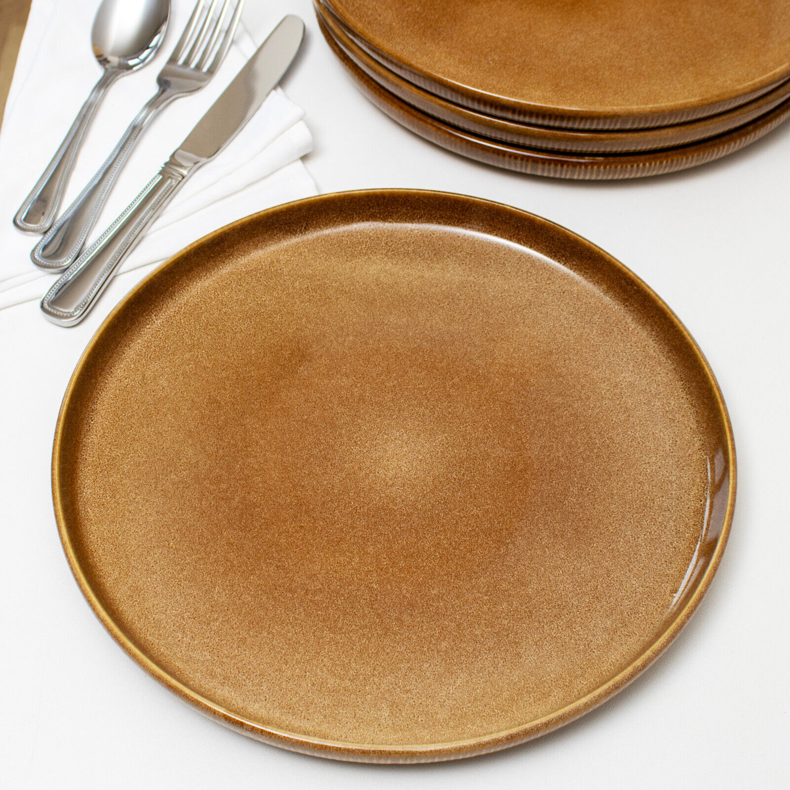 Brown Reactive Glaze Dinner Plates 27cm Set Of 4 Stoneware Kitchen Tableware