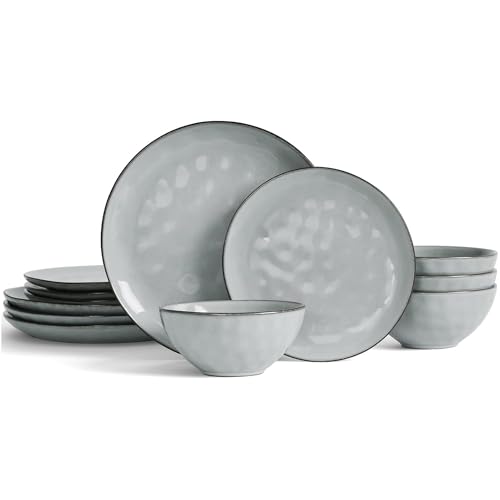 vancasso Dinner Sets for 12 People, 36-Piece Reactive Glaze Plates and Bowls Set, Mediterranean Style Dinnerware Set, Dishwasher & Microwave Safe Dinner Sets, Grey