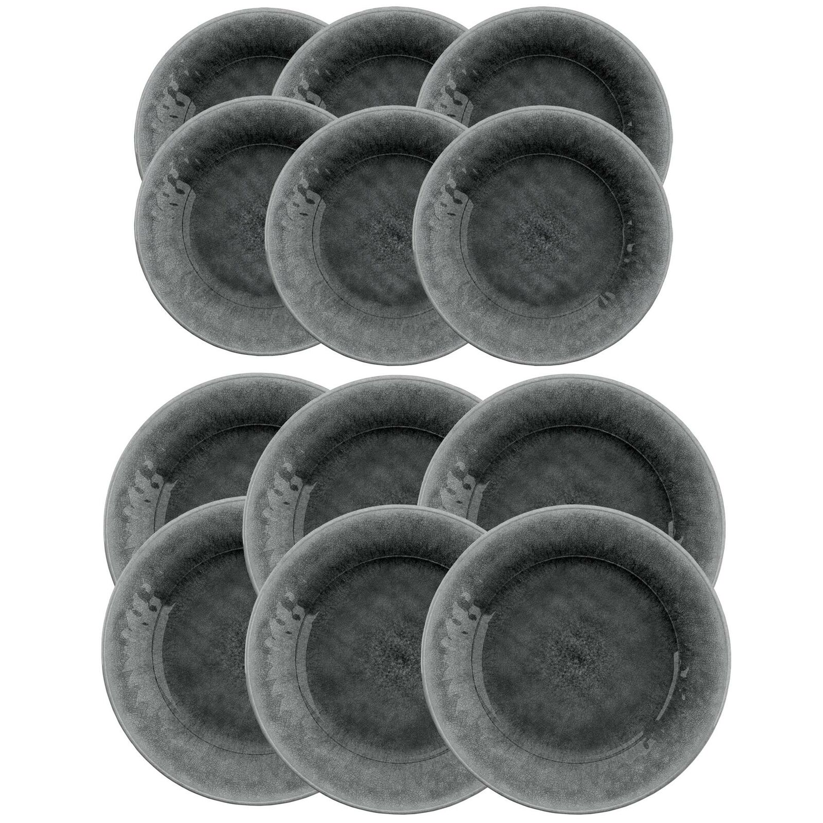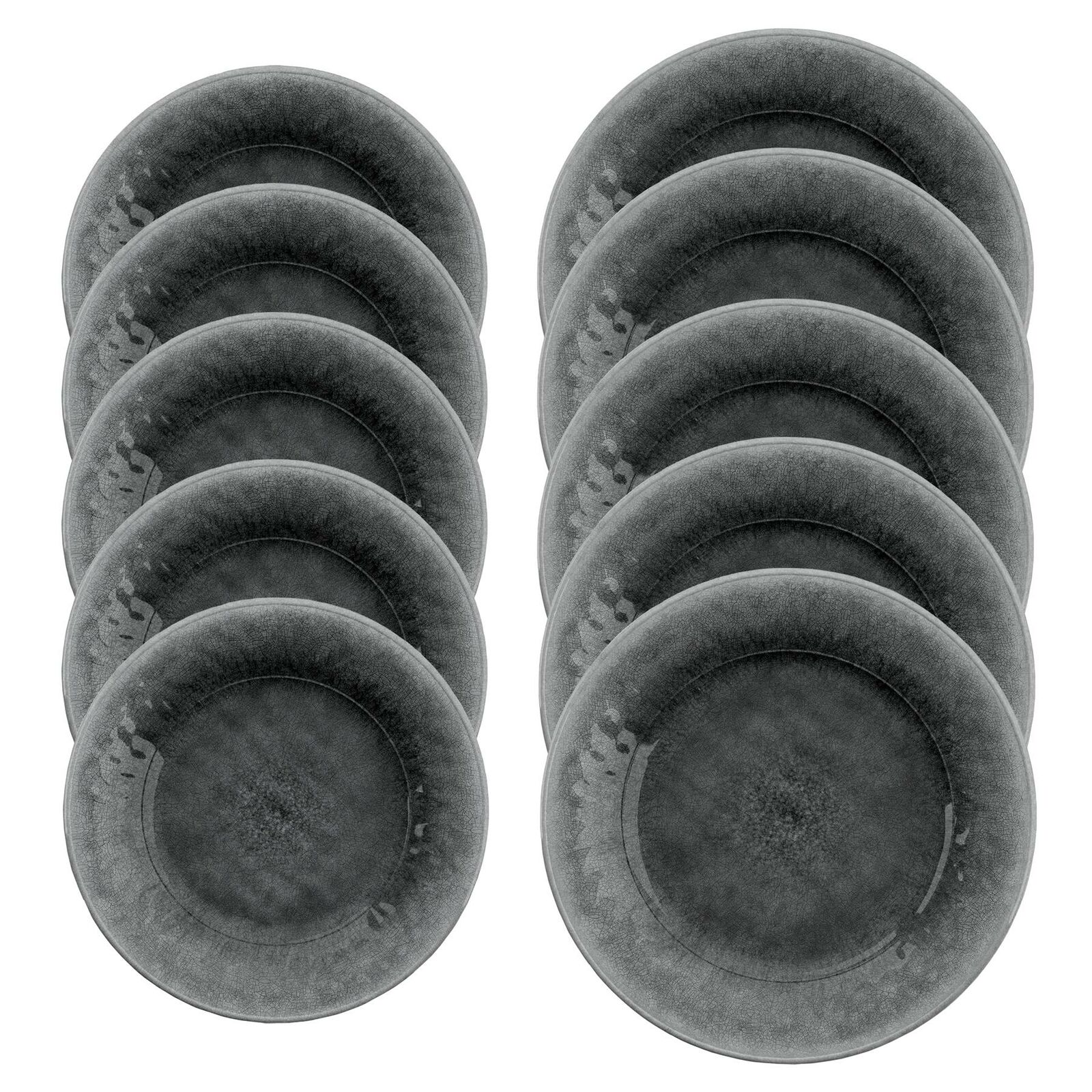 Potters Reactive Glaze Grey Melamine Outdoor 12 Piece Dinner & Side Plate Set