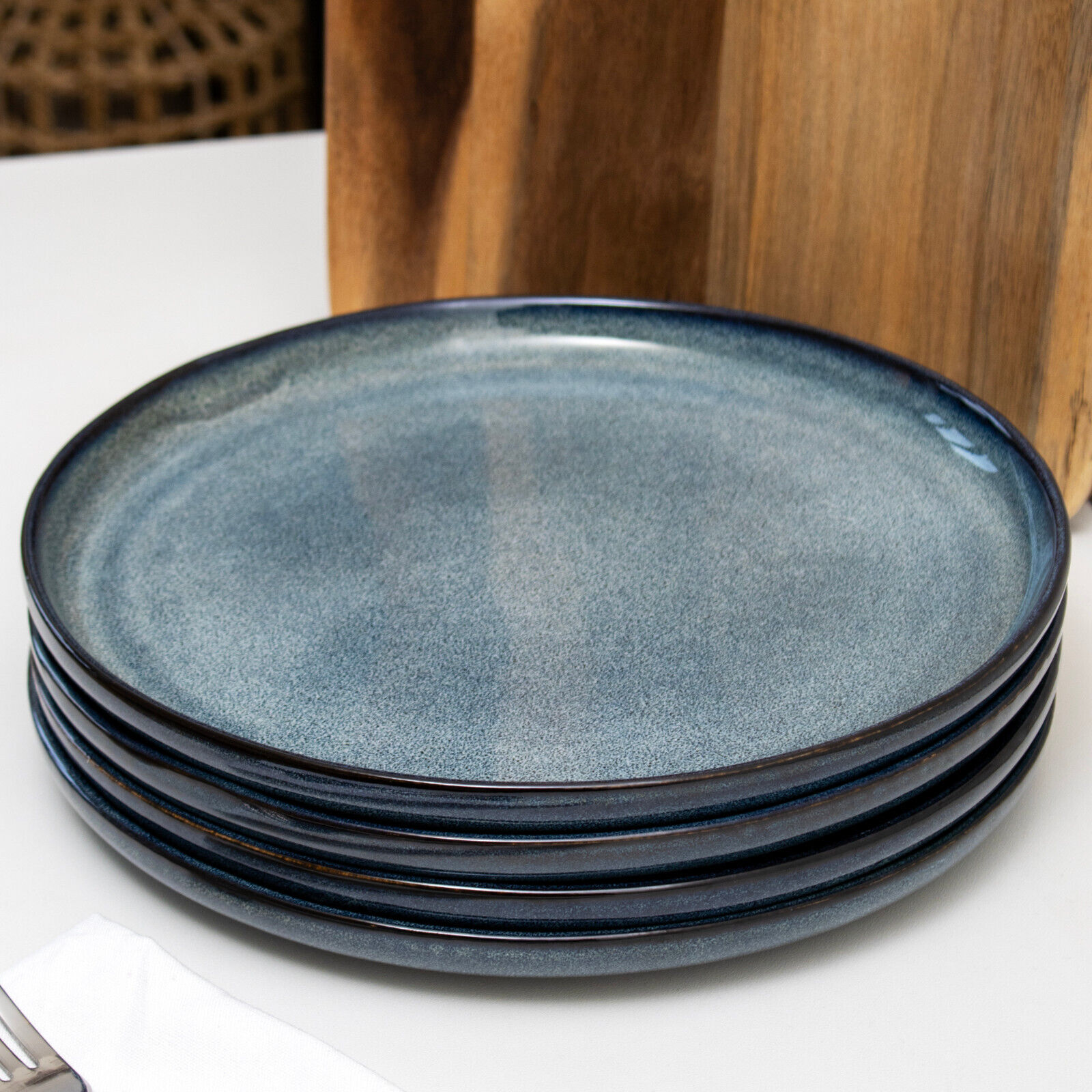 Blue Reactive Glaze Dinner Plates 26cm Set Of 4 Stoneware Round Large Kitchen