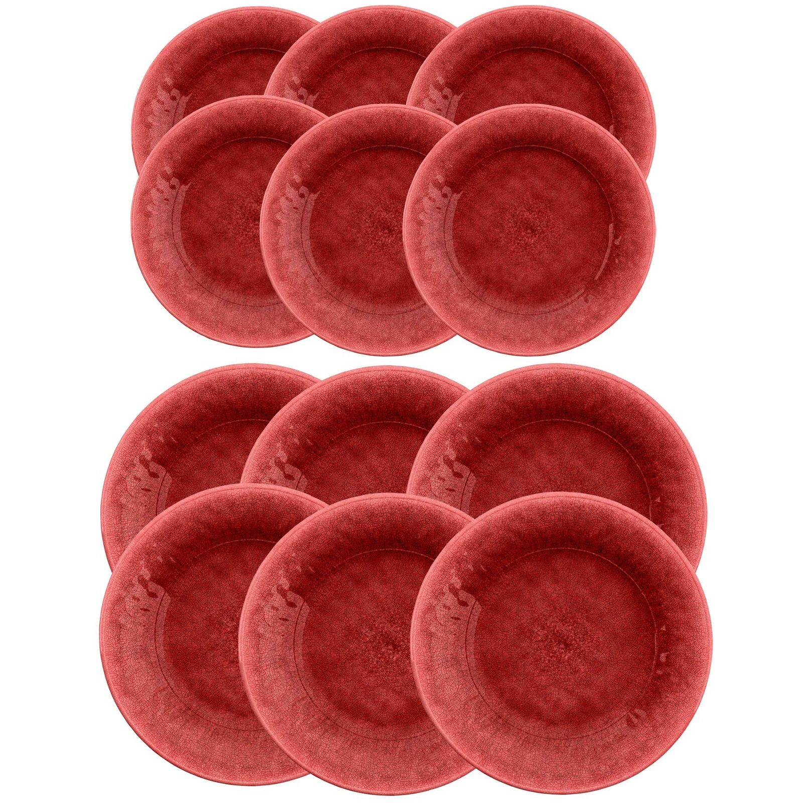 Potters Reactive Glaze Red Melamine Outdoor 12 Piece Dinner & Side Plate Set