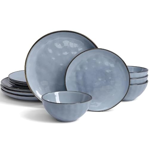HaWare 12 Piece Dinner Set, Stoneware Dinnerware Set for 4, Reactive Glaze Dining Ware Include Plates and Bowls, Chip and Scratch Resistant, Microwave & Dishwasher Safe, Myosotis Blue