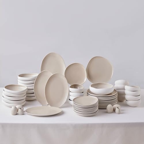 Karaca Earthy 52-Piece Stoneware Dinner Set for 12 People, Rustic Design with Reactive Glaze Finish Plates and Bowls Set, Microwave & Dishwasher Safe, Ideal Dinnerware for Everyday & Special Occasion