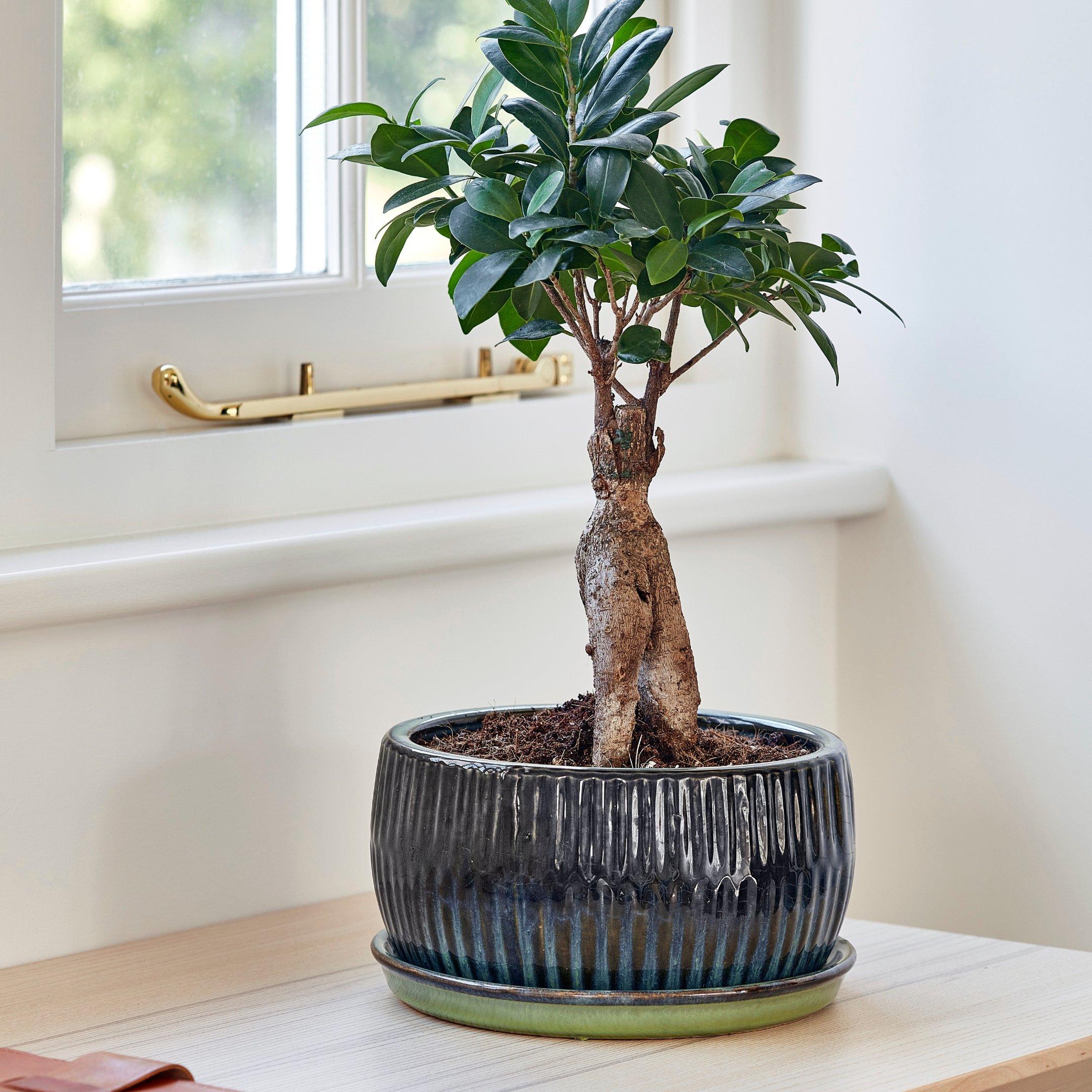 Emerald Round Reactive Glaze Bonsai Planters, Set of 2