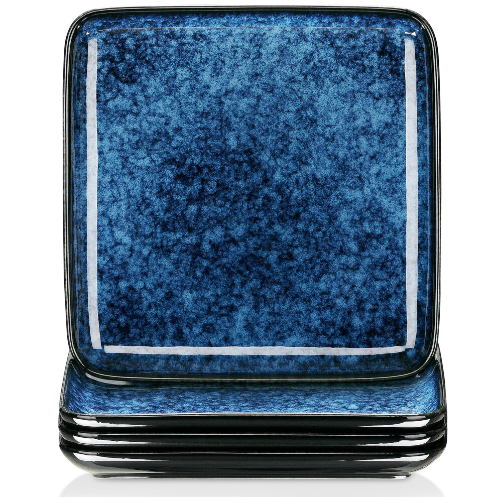 vancasso Stern Square Plate Set of 4, 10.5 Inch Dinner Plate, Reactive Change Glaze Blue Serving Plate
