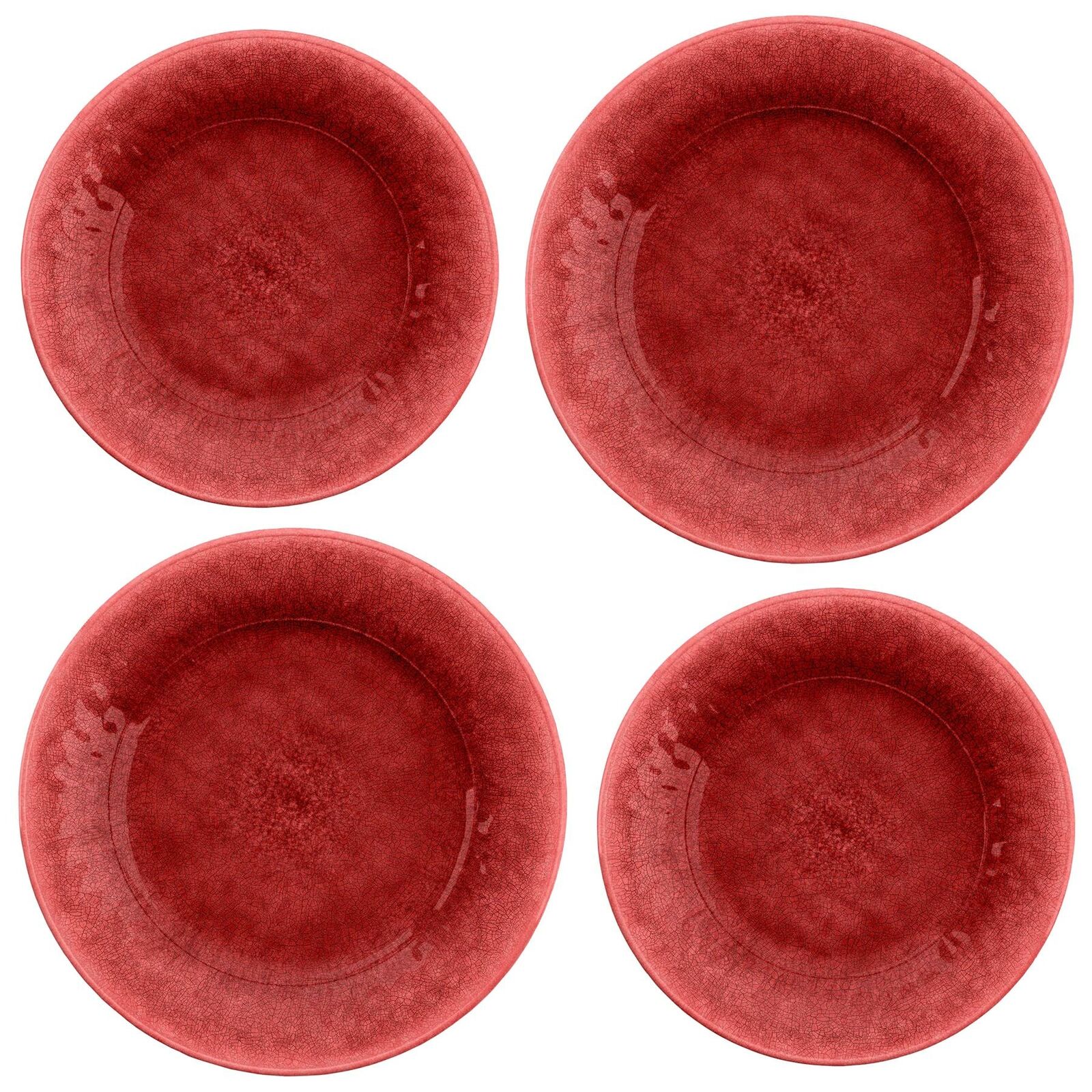Potters Reactive Glaze Red Melamine Outdoor 4 Piece Dinner & Side Plate Set