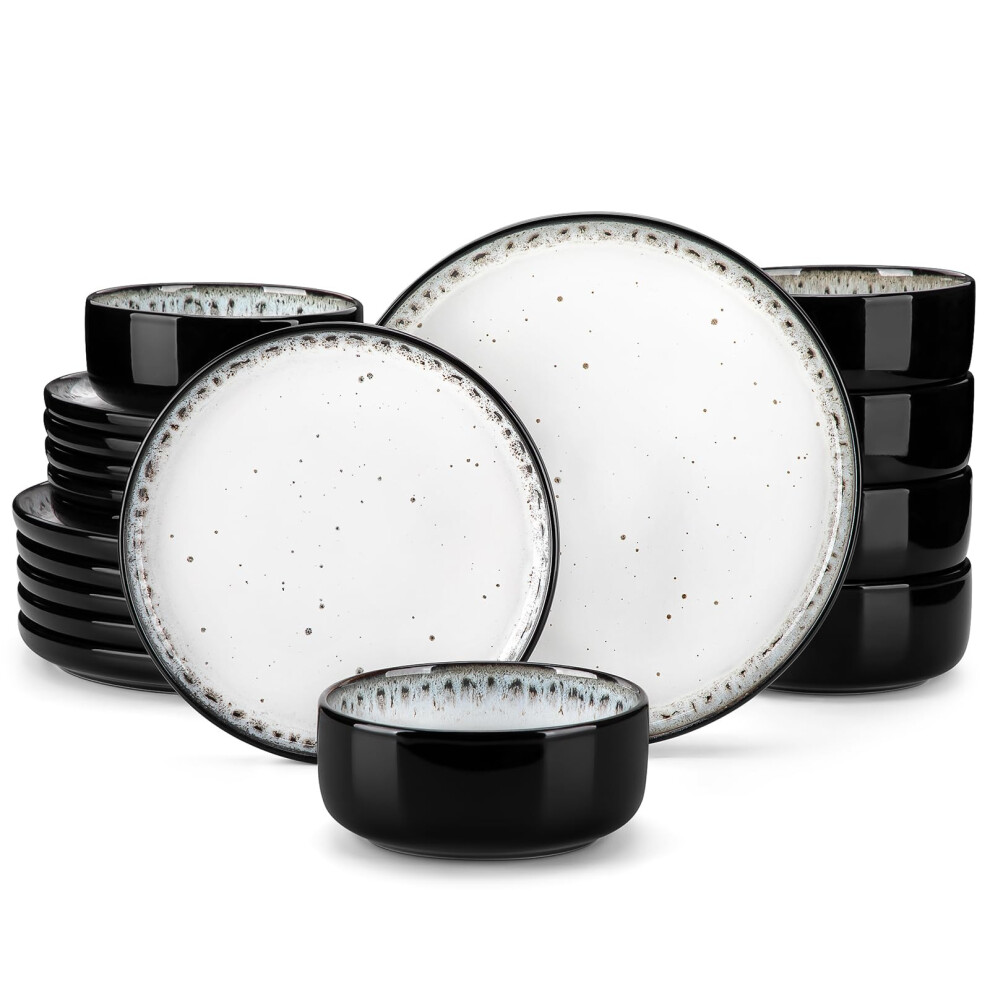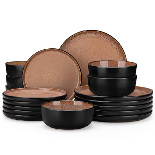 Homikit Dinner Sets for 6 People, 18-Piece Reactive Glaze Plates and Bowls Set, Elegant Dinnerware Stoneware for Kitchen, Healthy & Scratch Resistant,