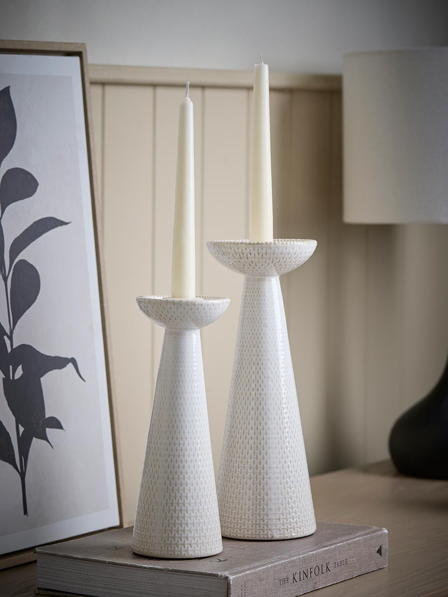 Two Reactive Glaze Dinner Candle Holders