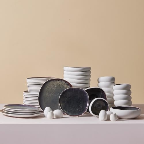Karaca Mercure 59-Piece Stoneware Dinner Set for 12 People, Reactive Glaze Finish Plates and Bowls Set, Microwave & Dishwasher Safe, Ideal Dinnerware for Everyday & Special Occasion