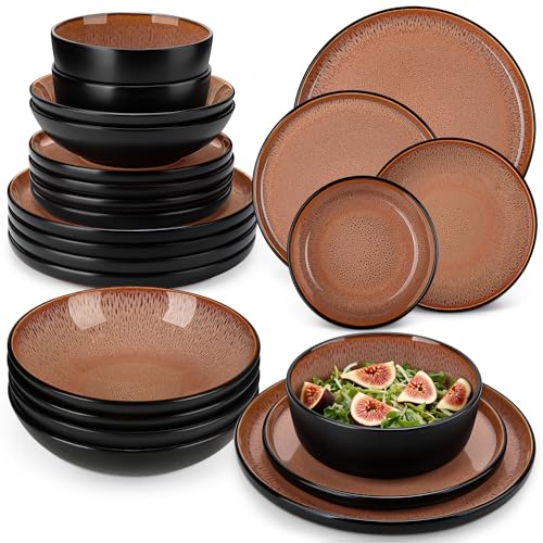 vancasso Amber 24 Pieces Dinner Set for 6, Reactive Glaze Stoneware Plates and Bowls Set, Red Crockery Set with Dinner Plates, Dessert Plates, Soup Bowls & Cereal Bowls, Microwave & Dishwasher Safe