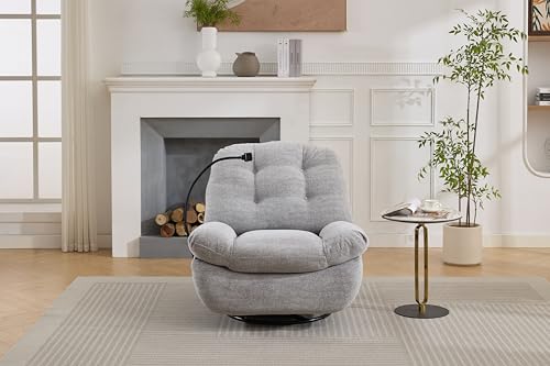 Raha Super Comfy Swivel Accent Chair | Oversized Single Sofa Lounger with Built-in Mobile Phone Stand | Cozy Reading Nook Armchair for Living Room, Bedroom & Nursery (Light Grey)