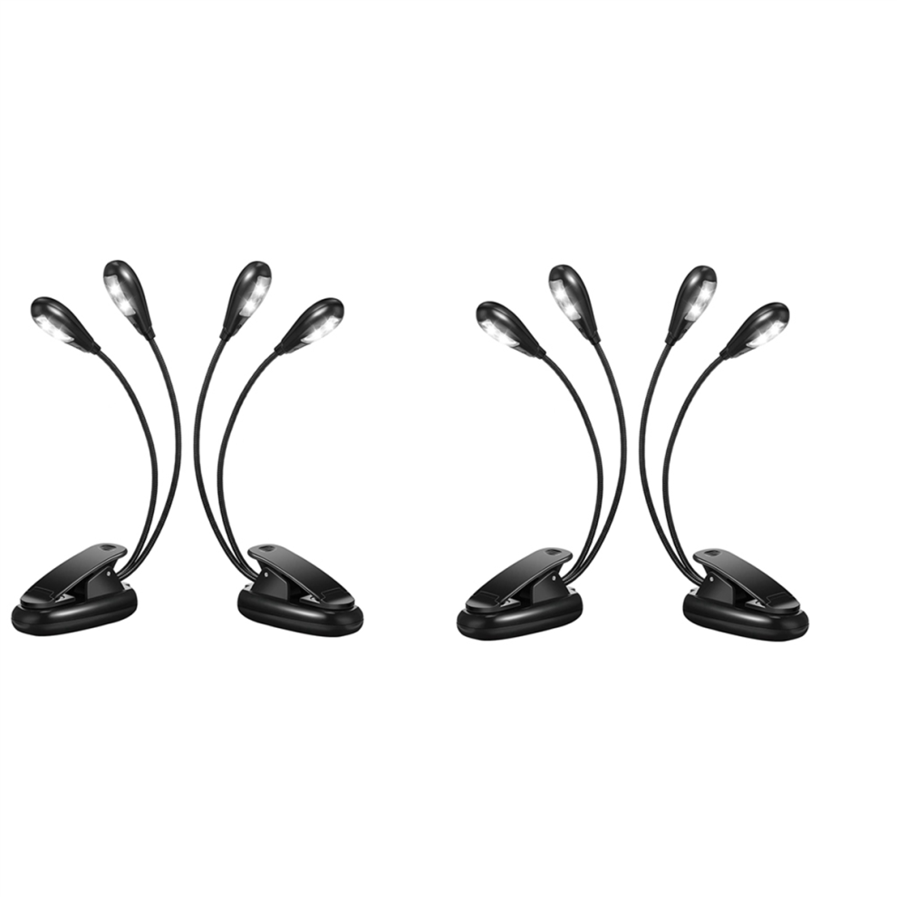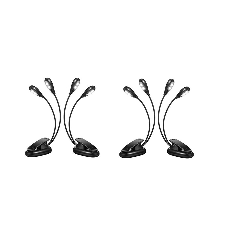 4Pcs Music Stand Light Clip on LED Book Lights Dual Arm Reading Lights for Books in Bed 360 Degree Adjustable Clip