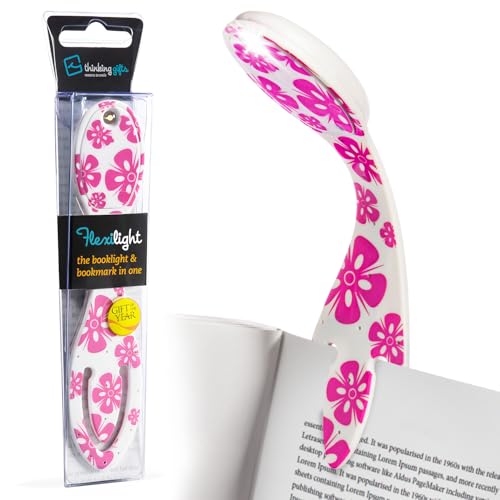 Gifts for Readers & Writers Bookmark Reading Light Pink Flowers -2in1 Clip On Bookmark Mini for Reading Night in Bed, Battery Operated Travel LED s, Flexible 8 Lumen Lights for Books