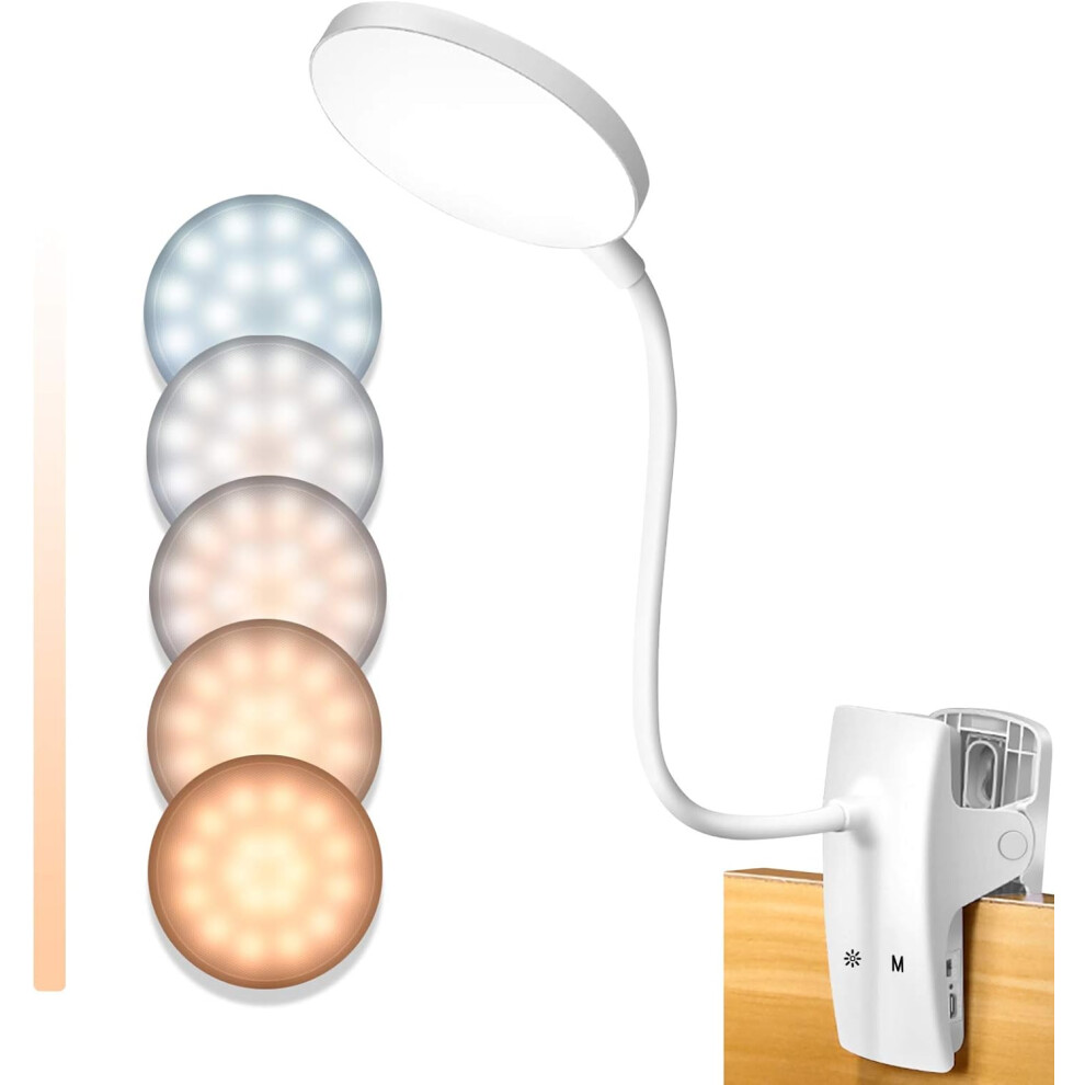 ReinHoo Desk Lamp,5 Colors+10 Brightness Reading Lamp LED Desk Light,550lm Bright Clip on Light, USB LED Lamp with Adapter, 360°Adjustable Reading Lights for Books in Bed, Bedside Table, Study, Craft