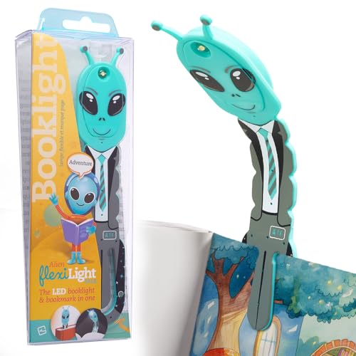 Gifts for Readers & Writers Bookmark Reading Light Alien Teal - 2in1 Clip On Bookmark Kids for Reading Night in Bed, Travel Cute s, Flexible 8 Lumen LED Lights for Books
