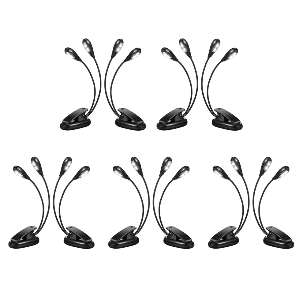 10Pcs Music Stand Light Clip on LED Book Lights Dual Arm Reading Lights for Books in Bed 360 Degree Adjustable Clip