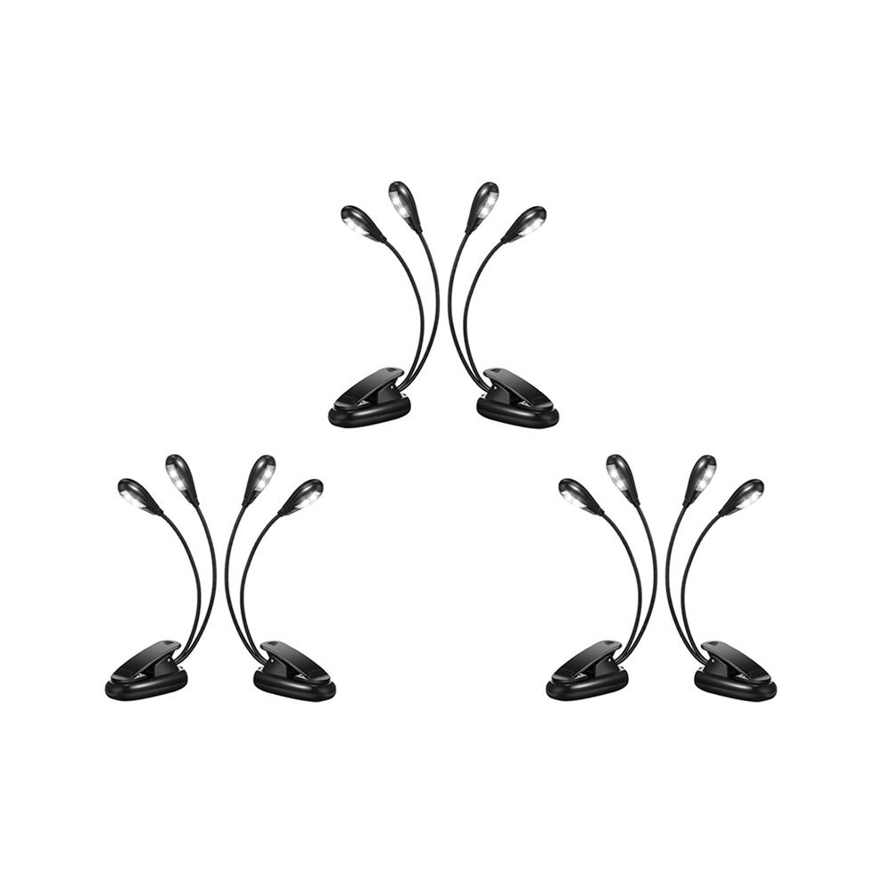 6Pcs Music Stand Light Clip on LED Book Lights Dual Arm Reading Lights for Books in Bed 360 Degree Adjustable Clip