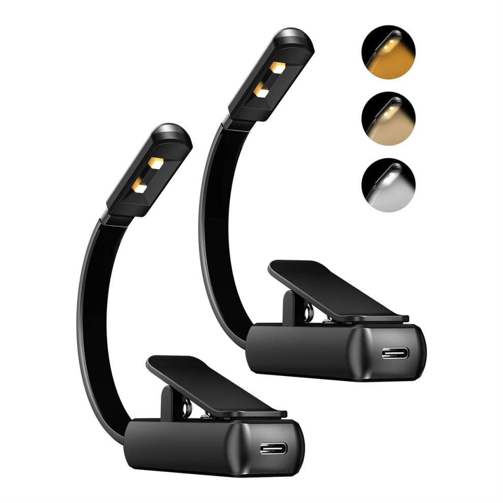 Reading Lights for Books in Bed, Portable Clip-on LED Lamp, USB Rechargeable, 3 Colors, 5 Brightness Levels, Timer