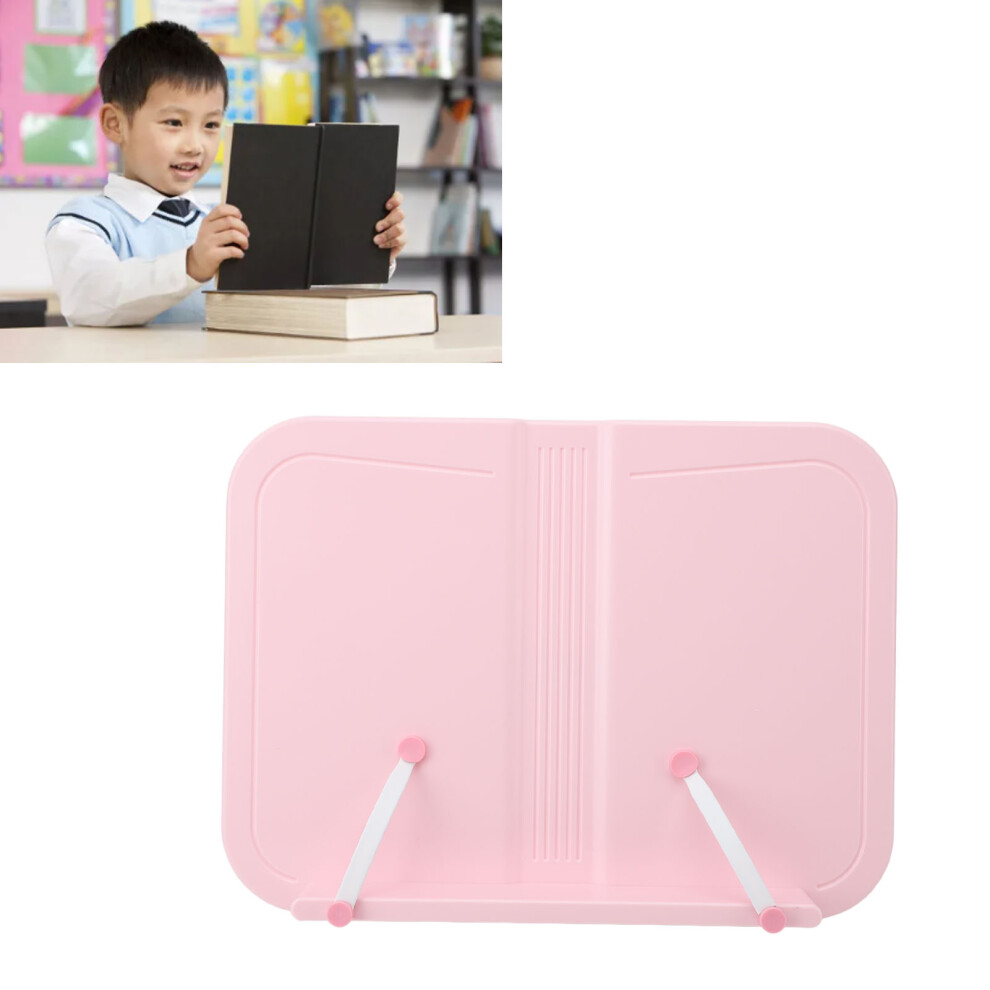 Pink Adjustable Book Stand with Page Clips for Reading and Tablets