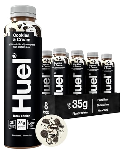 Huel Black Edition Ready-to-drink, 8 x 500ml Bottles, Protein Shakes, Cookies & Cream Flavour, High Protein Drink, 35g Protein Per Bottle, Rich in Vitamin D, Fatty Acids, Calcium, Ready Meals