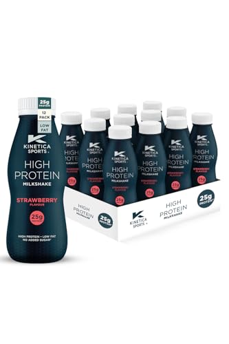 Kinetica Sports Ready-to-Drink High Protein Milkshake - Strawberry Flavour | 25g Protein/Bottle, 12 X 330ml Pack | High Protein, Low Fat & No Added Sugar |Convenient, high protein option for on-the-go