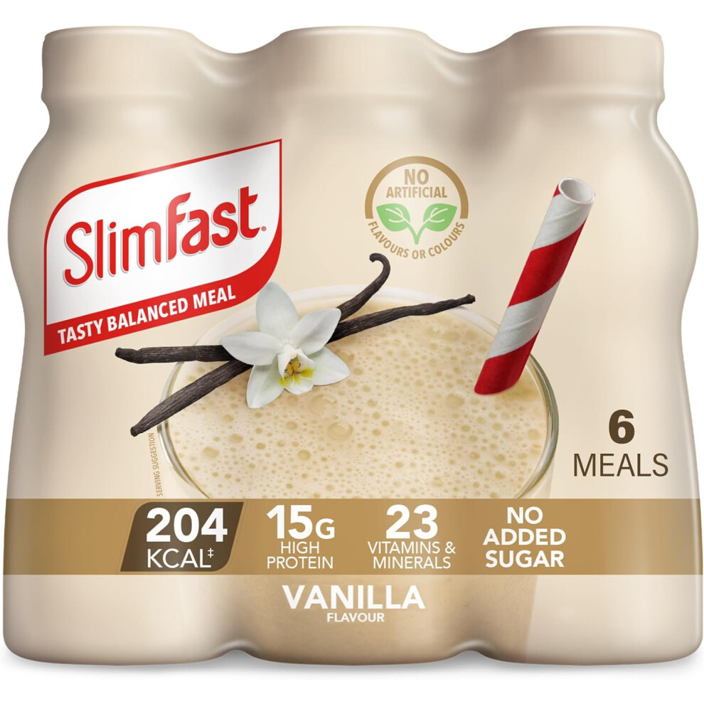 SlimFast Ready To Drink Shake Meal Shakes for Weight Loss & Balanced Diet High Protein Vitamins & Minerals No Added Sugar, Vanilla Flavour 6 x 325 ml