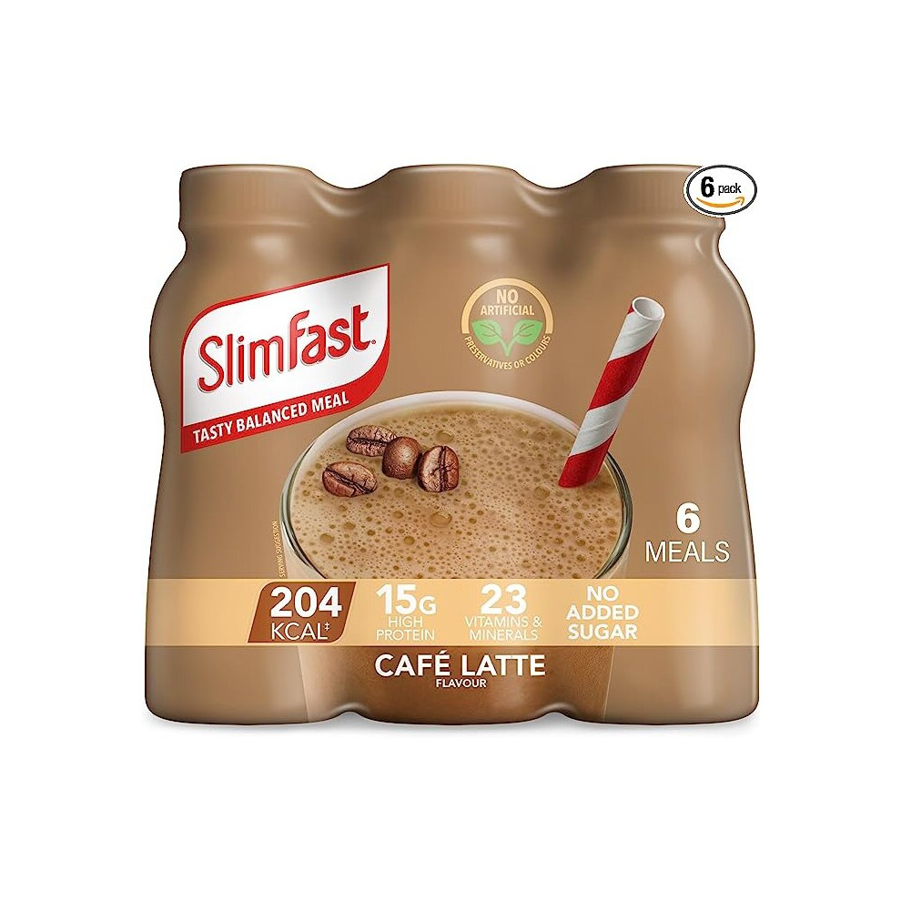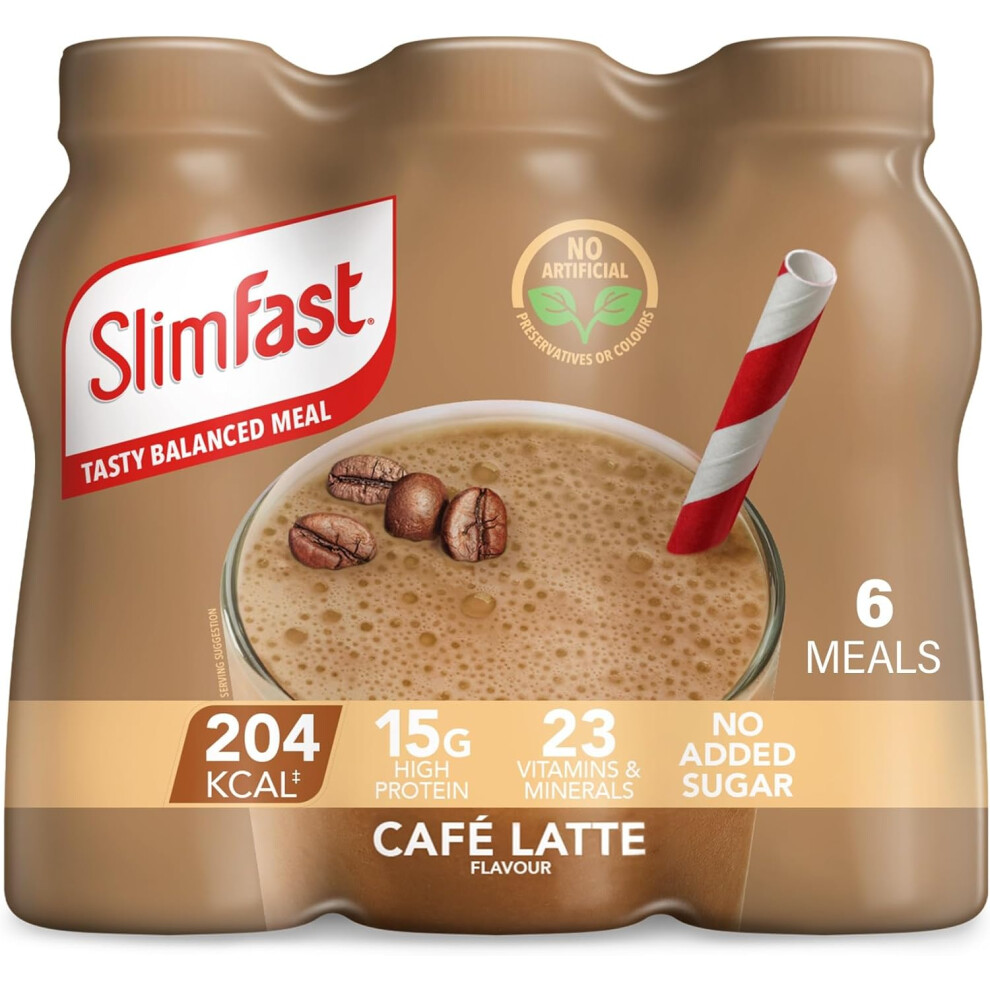 SlimFast Ready To Drink Shake, Meal Replacement Shakes for Weight Loss & High Protein, Vitamins, Minerals, No Added Sugar Cafe Latte Flavour 6x325 ml